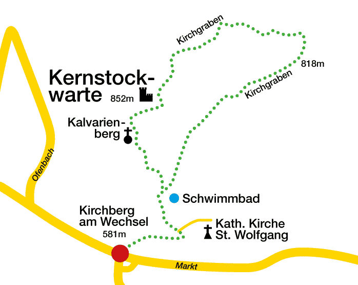 Heute ist die neu renovierte und um eine Aussichtstafel erweiterte Kernstockwarte ein beliebtes Ausflugsziel im Winter wie im Sommer. Es gibt mehrere Möglichkeiten, zu der Aussichtswarte zu gelangen, für solche, die gut zu Fuß sind, aber auch jene, die es lieber gemächlich angehen. Für alle, die die Abwechslung lieben, steht ein Rundweg zur Verfügung. Beispielsweise könnte man bergauf den idyllischen Waldpfad wählen und herunter die Forststraße marschieren, was vor allem im Winter ratsam ist.
