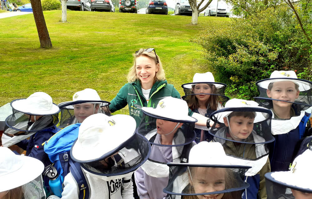 Valeria Voit weiht die Schüler, die immer wieder an der Imkerschule der LFS Warth zu Gast sind, in die Geheimnisse der Bienen ein