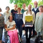 Von links: Chorleiterin Antonia Schmid, Veronika Komuczky, Sandra Weinand, Renate Hölmling, Helga Soukup, Pauline Röhl, Thomas Blaschke und (vorne sitzend) Sabrina Terzer mit der Obfrau des Tierschutzhauses Wiener Neustadt, Renate Wolfger mit Hund Percy