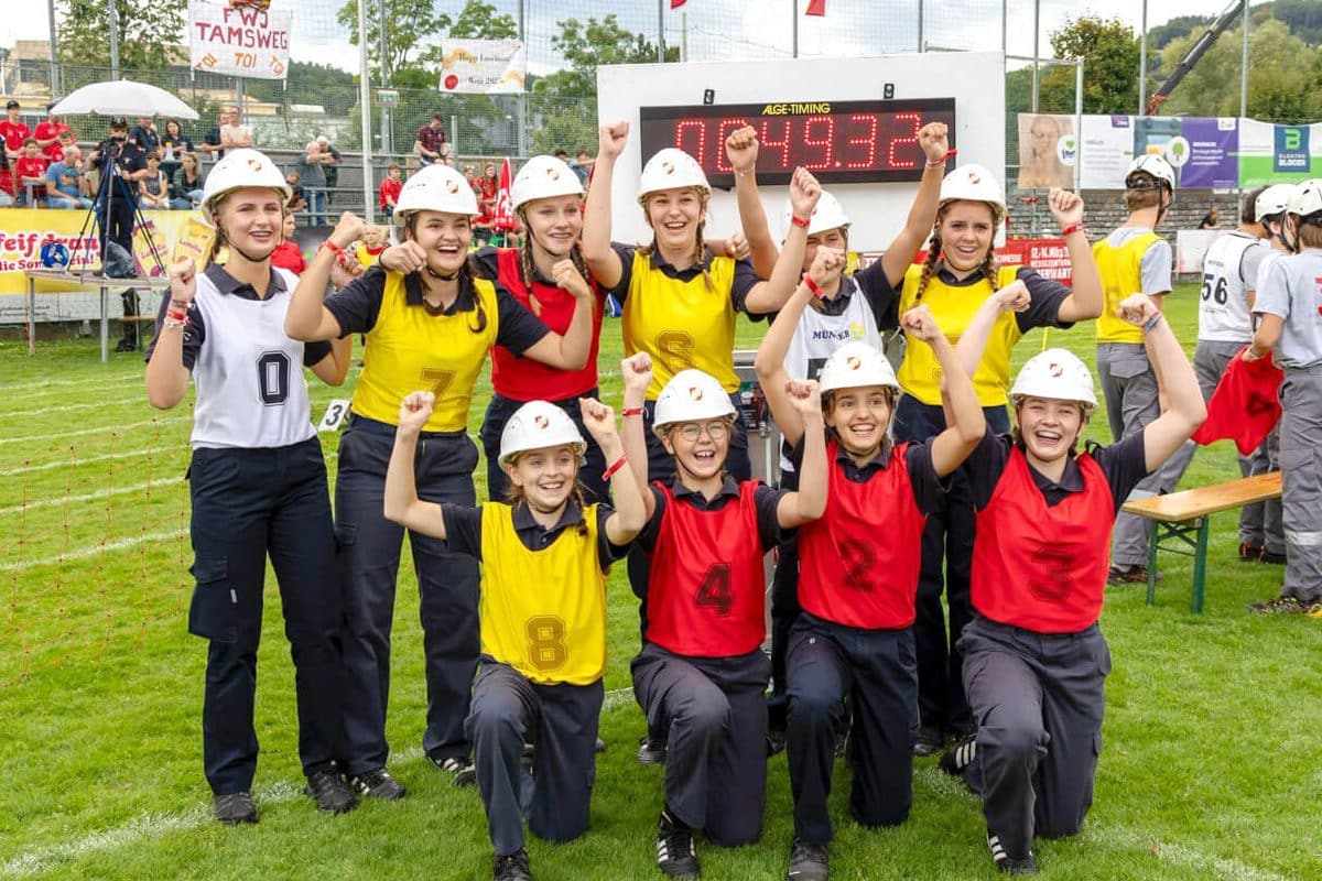 Die Feuerwehrjugend von Hollenthon feiert zwar erst nächstes Jahr ihr 50. Jubiläum, Grund zum Feiern gab es aber schon jetzt. Denn erstmals ist es heuer aufgrund der großen Anzahl von jungen Nachwuchs-Feuerwehrfrauen möglich gewesen, mit einer reinen Mädchenmannschaft bei den Bewerben anzutreten – und das mit sensationellem Erfolg. Mit ihren Landessiegen in den Wertungsklassen Bronze und Silber haben sie sich für den Bundesbewerb in Weiz qualifiziert und zeigten dort ihr Können. Auf der Hindernisbahn (49,32 Sekunden) und beim Staffellauf (82,22 Sekunden) legten sie zwei fehlerfreie Läufe hin. Mit exakt 1045,56 Punkten holten sie sich in der Wertungsklasse Mädchen den zweiten Platz und sind somit Vize-Staatsmeisterinnen.