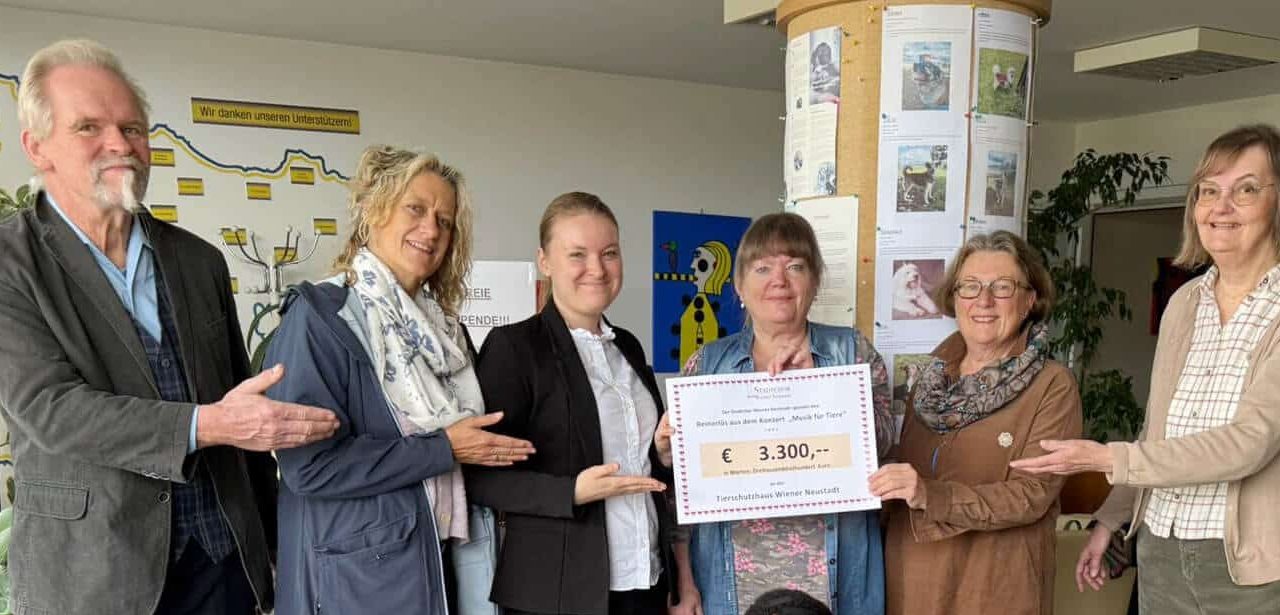 Mit einem Benefizkonzert sammelte der Stadtchor Wiener Neustadt für das Tierschutzhaus. Und so bekam das Publikum nicht nur Tierlieder zu hören, sondern zeigte sich auch spendabel: Insgesamt 3.300 Euro konnten nun für die Tiere übergeben werden.