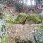 Links bergauf führt ein asphaltierter Güterweg Richtung Almbauer, dem wir folgen. Nach der ersten Kurve kann man schön auf die Wiese ausweichen. Oben angekommen, lädt  das erste Bankerl zur Rast und aussichtsreichem Rundblick ein. Wir wandern rechts hinter dem Gehöft auf einem Traktorweg vorbei, bis wir zu einem Hochstand kommen. Dort geht es bergab am Waldrand entlang, bis uns rechts ein bewachsener Forstweg in den Wald hineinführt. Diesem folgen wir circa zweihundert Meter. Nach einer Linkskurve erspähen wir über uns schon die besagten „Wackelsteine“. Nach einer kleinen „Kletterpartie“ stehen wir schon zwischen den Felsbrocken, unter ihnen zahlreiche Höhlen. Der Waldboden ist hier fast unterminiert. Das ist sehr interessant anzuschauen, wodurch es sich auch für größere Kinder als Ausflugsziel anbietet.