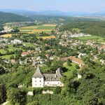 Die Burg Pitten gehörte zur strategisch wichtigen  Infrastruktur von Graf Ekbert und seiner Familie. Hier hatte er einen guten Überblick über die Region. / Fotos: @ HiSunnySky – stock.adobe.com, @ barbaliss – stock.adobe.com, Schwendenwein, Gerhard Anzinger, Wels, Public domain, via Wikimedia Commons, Ailura, CC BY-SA 3.0 <https://creativecommons.org/licenses/by-sa/3.0>, via Wikimedia Commons, C.Stadler/Bwag